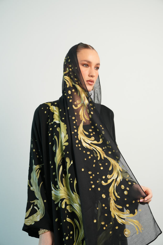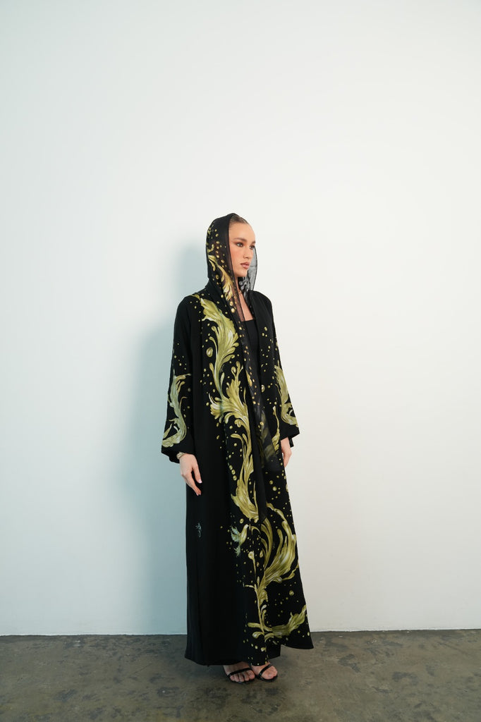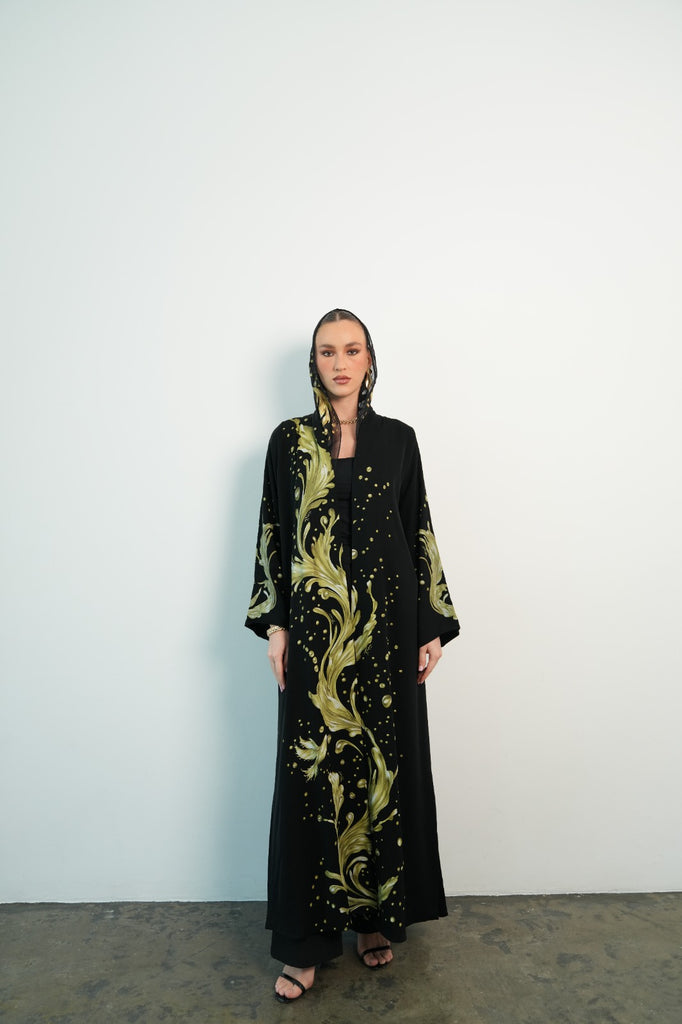 printed fabric abaya, comes with matching printed sheila.